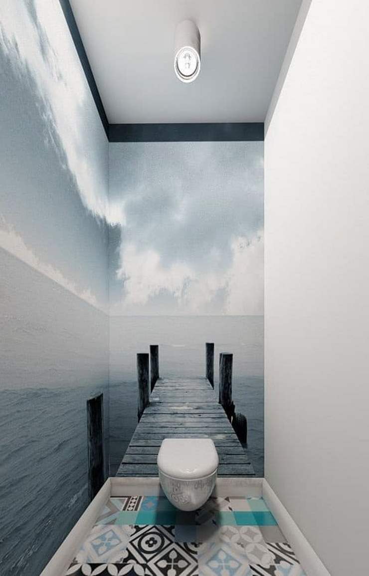 Tạo không gian rộng bằng hình ảnh: Bằng việc tận dụng những góc nhìn, không gian nhà vệ sinh nhỏ sẽ rộng rãi hơn. Tuy nhiên, bạn chỉ nên áp dụng tối đa trên 2 bức tường để đạt được hiệu quả tốt nhất.