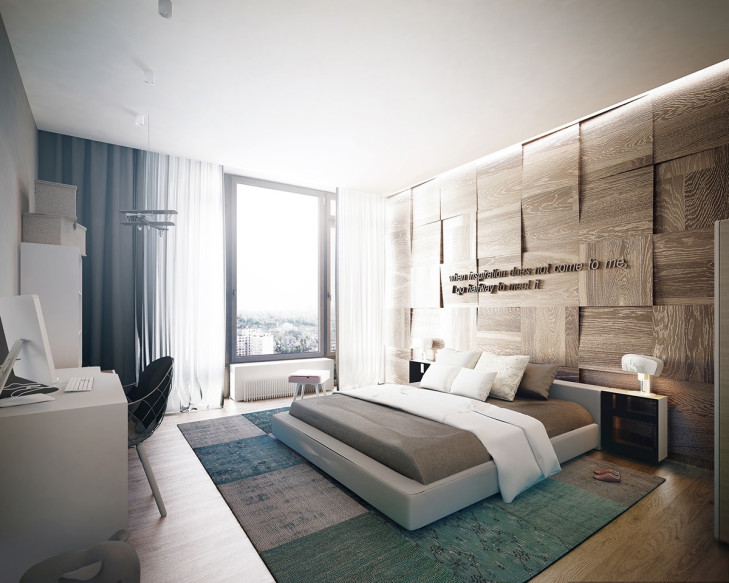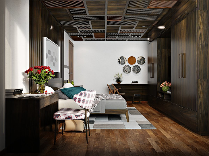 Cuối cùng, các ô vuông bằng gỗ sắp xếp một cách có chủ ý khiến nội thất phòng ngủ có nét sáng tạo độc đáo riêng không thể trộn lẫn với bất kỳ căn phòng nào khác.
