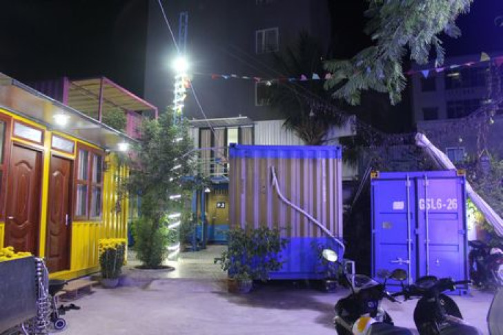 Khuôn viên homestay container khi lên đèn.