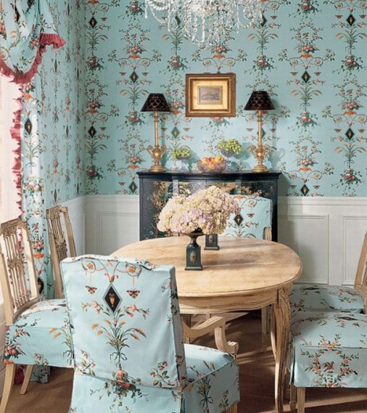 Bước vào một ngôi nhà phong cách đồng quê Pháp bạn sẽ có cảm giác như mình lạc vào một cánh đồng hoa đang mùa nở rộ. Hoa và họa tiết hoa hiện diện khắp nơi trong ngôi nhà. Hoa đã trở thành một trong những nét đặc trưng cơ bản không thể thiếu trong nội thất phong cách đồng quê Pháp. Dường như tất cả các loài hoa đồng nội đều có thể trở thành cảm hứng cho những họa tiết trang trí vậy.