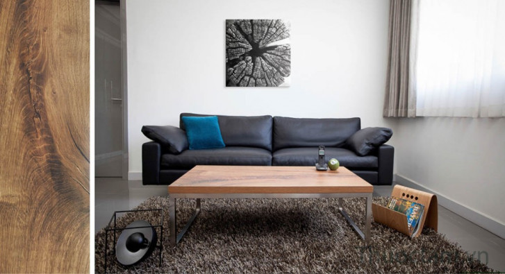 Bàn sofa phòng khách sử dụng chất liệu Laminate Vân Gỗ dán trên nền MDF lõi xanh kháng ẩm
