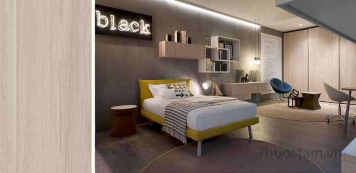Phòng ngủ hiện đại, sang trọng MFC kháng ẩm vân gỗ.