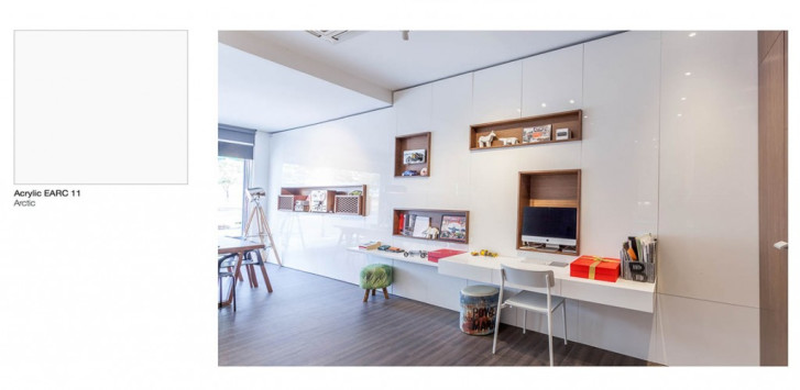 Không gian làm việc hoàn hảo với MFC kháng ẩm vân Gỗ kết hợp Acrylic Trắng.