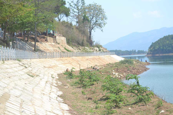 Bờ kè chắn đất, ốp mái taluy Biển Hồ, TP. Pleiku. Ảnh: Hoàng Cư