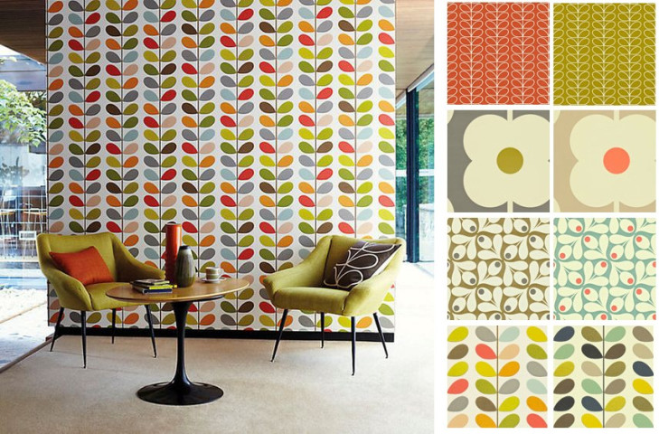 Ngoài ra, giấy dán tường với họa tiết lớn được coi là đặc trưng và sử dụng rộng rãi trong phong cách Retro. Chịu ảnh hưởng nhiều từ nhạc Pop, tình yêu tự do, các họa tiết có hình dạng hoa lá, có tính chất lặp lại tạo ảo giác (psychedelic)
