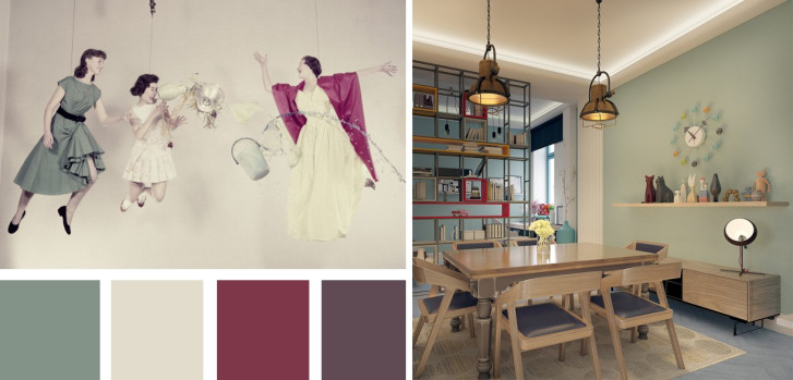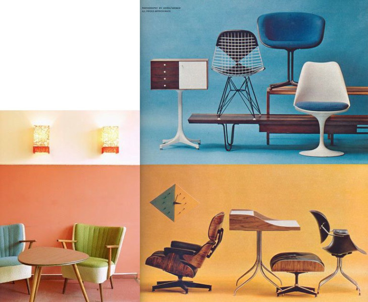 Phong cách Retro có sức lan tỏa mạnh mẽ trong lĩnh vực thiết kế thời trang, vì thế màu sắc sử dụng trong nội thất cũng chịu nhiều ảnh hưởng từ thời trang trong từng giai đoạn tương ứng