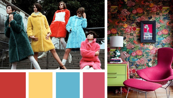 Những năm 60 là thập niên của những màu sắc tươi sáng, rực rỡ được kết hợp một cách đầy ngẫu hứng và táo bạo. Những gam màu đậm như trắng, đỏ, hồng, cam, tím và bạc hoàn toàn có thể xuất hiện bên cạnh nhau một cách vô cùng tự nhiên tạo cho không gian vẻ đẹp vô cùng rực rỡ và ấn tượng.