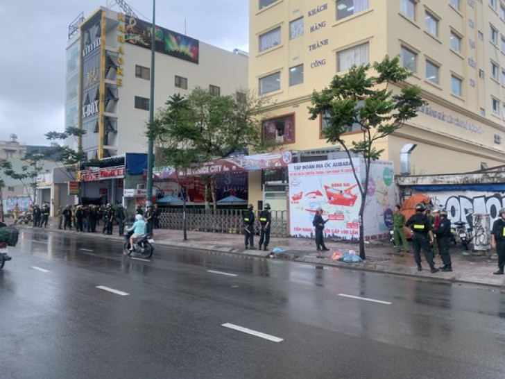 Lực lượng chức năng bao vây phong tỏa mặt sau trụ sở Công ty Alibaba tại đường Kha Vạn Cân