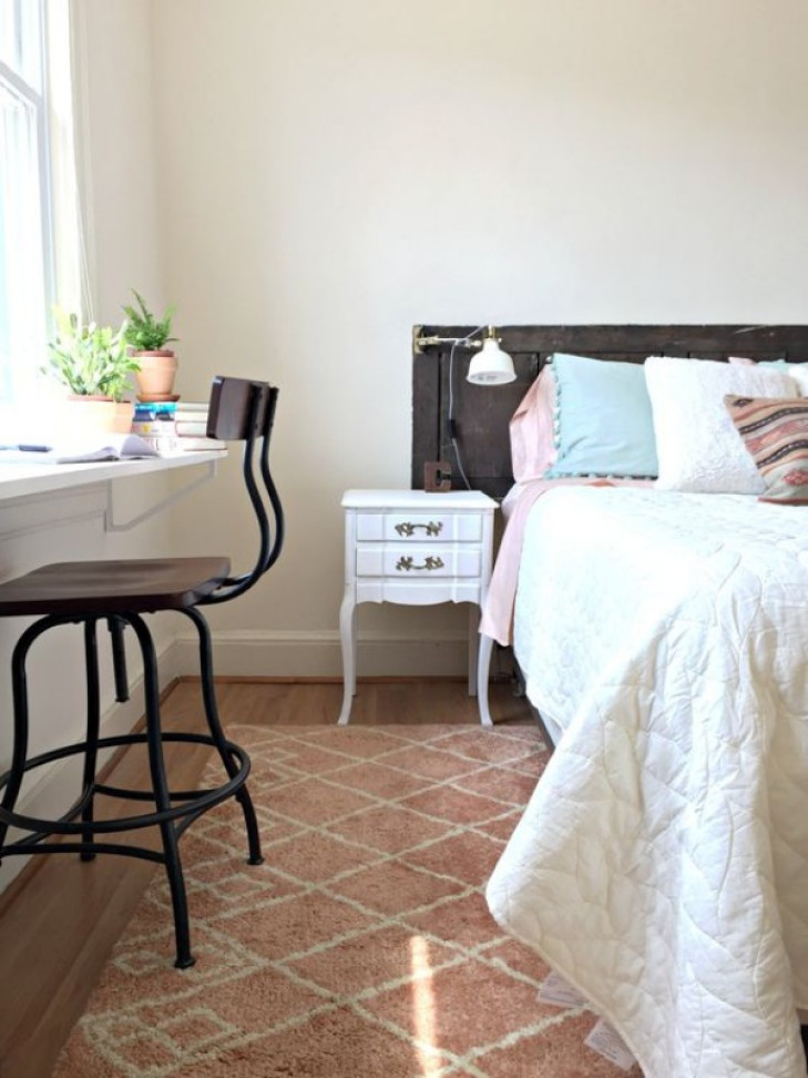 Một góc làm việc nên thơ trong phòng ngủ nhỏ khi gia chủ kết hợp một chiếc bàn nhỏ có màu trắng cùng màu với bện cửa sổ. Với các xử lý không gian khá đơn giản này sẽ cho bạn cảm giác thoải mái nhất khi ngồi vào góc làm việc và chẳng thể muốn rời xa nó.