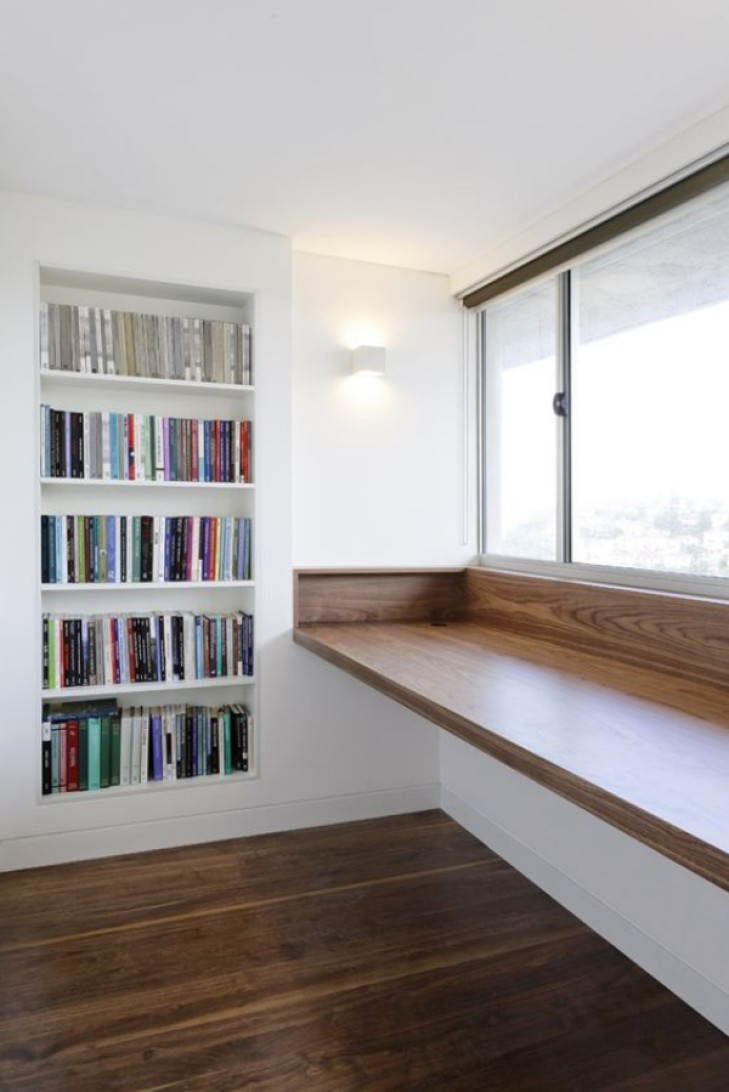 Thật tuyệt vời nếu khung cửa sổ nhà bạn đủ lớn để thiết kế một góc làm việc thoải mái. Đối với những khung cửa sổ lớn gia chủ có thể thiết kế thêm các khu vực lưu trữ để góc làm việc sáng đẹp và gọn xinh hơn.