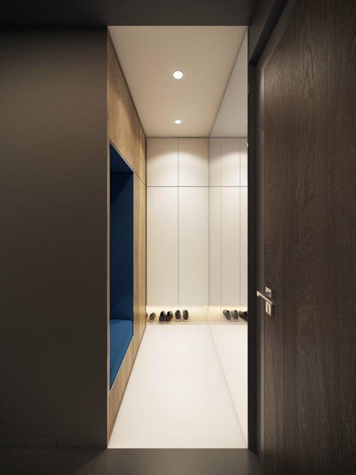 Kiến trúc nội thất độc đáo và phức tạp, mọi đồ vật bên trong phòng khách được phản chiếu vào một chiếc gương dài ở bên phải, tạo cảm giác bố trí nội thất giống như mê cung.