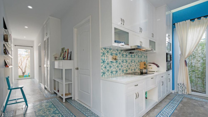 Khu bếp tiện nghi và nên thơ với nội thất hiện đại.