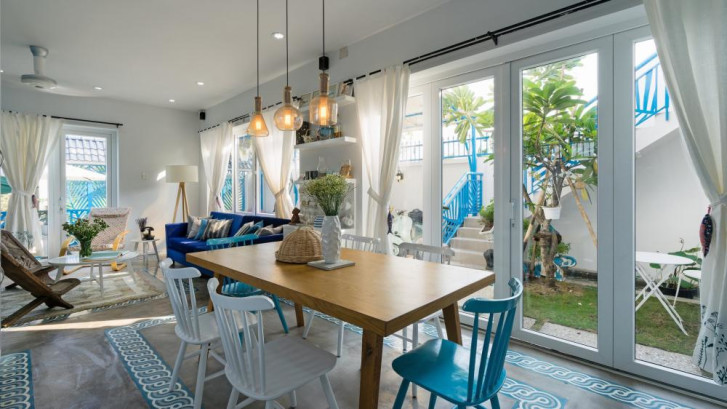 Không gian nội thất nhà phố được thiết kế bài trí theo phong cách coastal thơ mộng và mát mẻ.