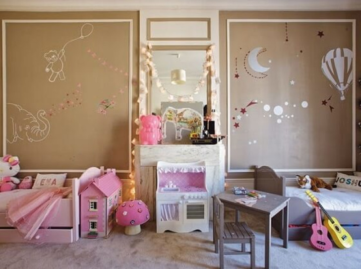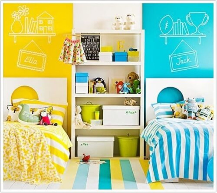 Chỉ cần thay đổi màu sắc khác nhau đi một chút, bạn có thể tạo ra căn phòng dễ dàng phân biệt đâu là “lãnh thổ” của công chúa và đâu là “lãnh thổ” của hoàng tử rồi.