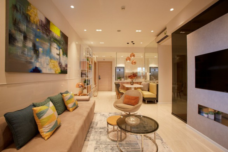 Phòng khách sang trọng tại căn hộ mẫu 2 phòng ngủ.