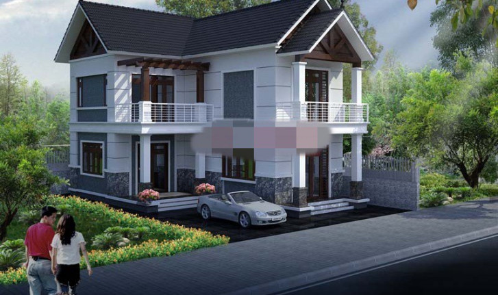Nhìn từ xa, căn nhà 2 tầng giống như một mẫu biệt thự với hệ thống cảnh quan sân vườn được quy hoạch vô cùng khoa học và đẹp mắt. Ảnh:Wedo.
