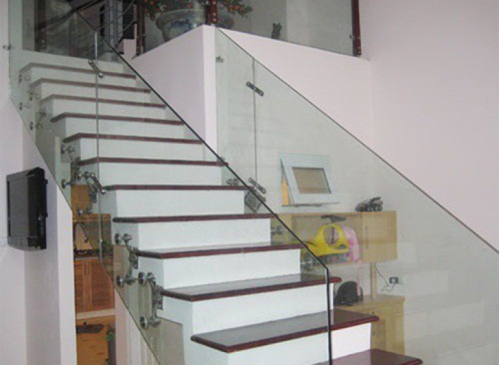 Lan can kính không tay vịn giúp căn nhà trở nên đẹp hiện đại, lịch sự và có tầm nhìn rộng mở không bị che khuất bởi những vật cản như tay vịn inox hay tay vịn gỗ vẫn dùng. Ảnh: Nhomxinhcaocap.
