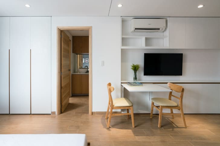 •Nội thất các căn hộ và penthouse đi theo tông màu gỗ, bìa gỗ tạo sự ấm cúng. Nội thất xen lẫn HDF trắng cho không gian nhỏ tạo cảm giác không gian rộng hơn.