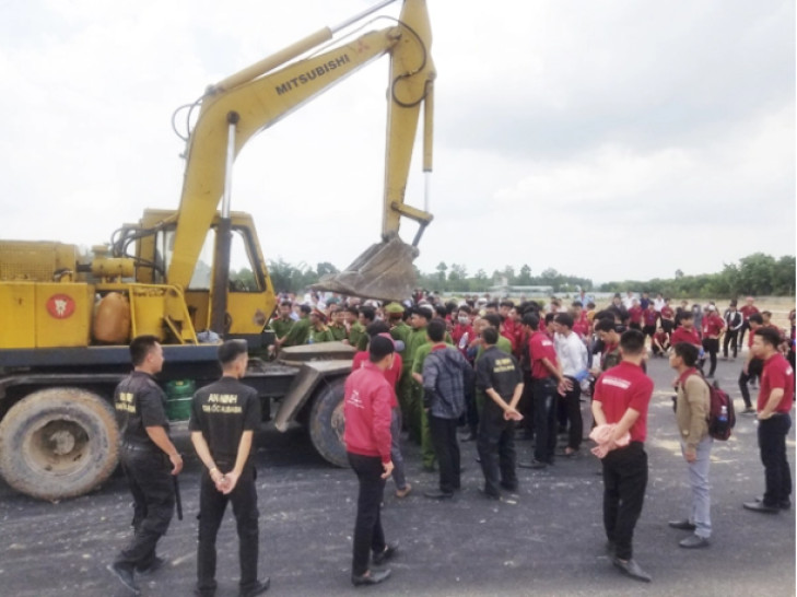 Khoảng 10 giờ cùng ngày 13/6, đoàn thi hành quyết định cưỡng chế thì có khoảng 60 - 70 người, mặc áo có in dòng chữ "Tập đoàn địa ốc Alibaba" kéo đến.