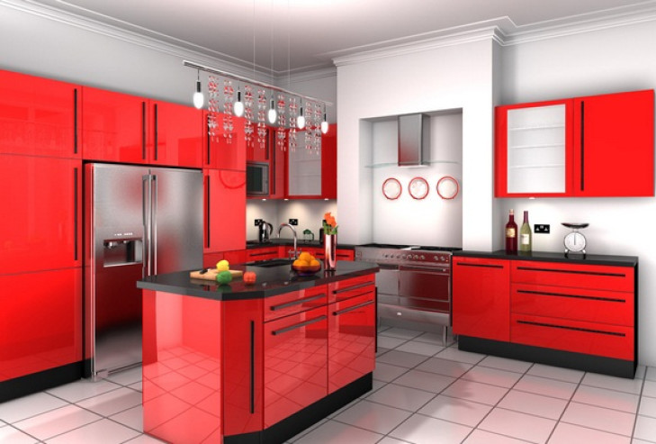 Sắc đỏ luôn được coi là tông màu chủ đạo trong việc trang trí nhà cửa, trang phục cũng như món ăn vào mỗi dịp Tết đến xuân về. Theo quan niệm xưa, màu đỏ tượng trưng cho sự may mắn và tài lộc đến với gia đình. Vì thế, gia chủ có thể tận dụng gam màu đỏ ở một số đồ nội thất trong khu vực nấu nướng như ghế ngồi, tủ bếp hoặc đèn để tạo nên sự nổi bật, ấm áp. Để trung hòa “sự nóng” của màu đỏ, có thể kết hợp với gam màu trắng hoặc xám để căn bếp trở nên hiện đại, sáng sủa hơn trong mùa xuân mới.