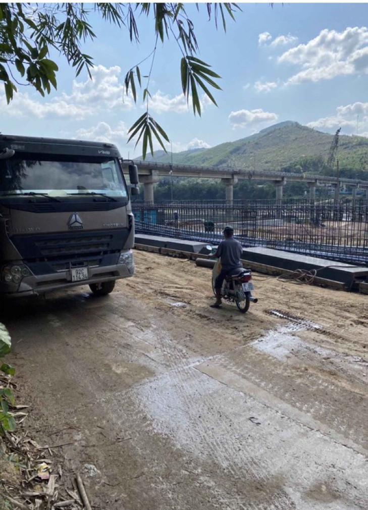 Xe tải chở đất từ dự án chạy ra QL14H, bột đất đổ xuống lòng đường gây bụi mù mịt, rất nguy hiểm cho người dân tham gia giao thông